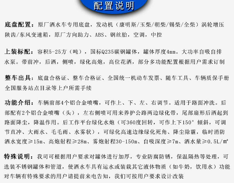 喷药洒水车:加装喷药装置,喷药射程15-80米可选,装水容积4-20方可选