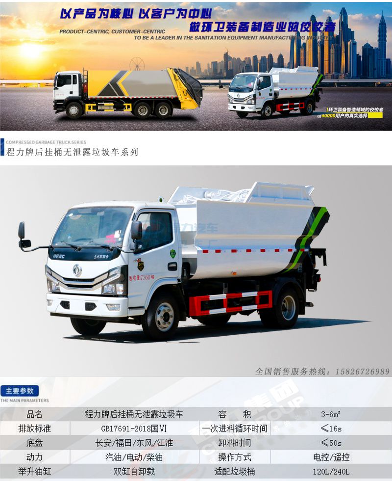 • 密封无泄露后挂桶垃圾车系列
