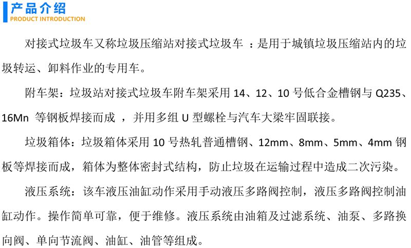 • 密封无泄露厢式对接垃圾车