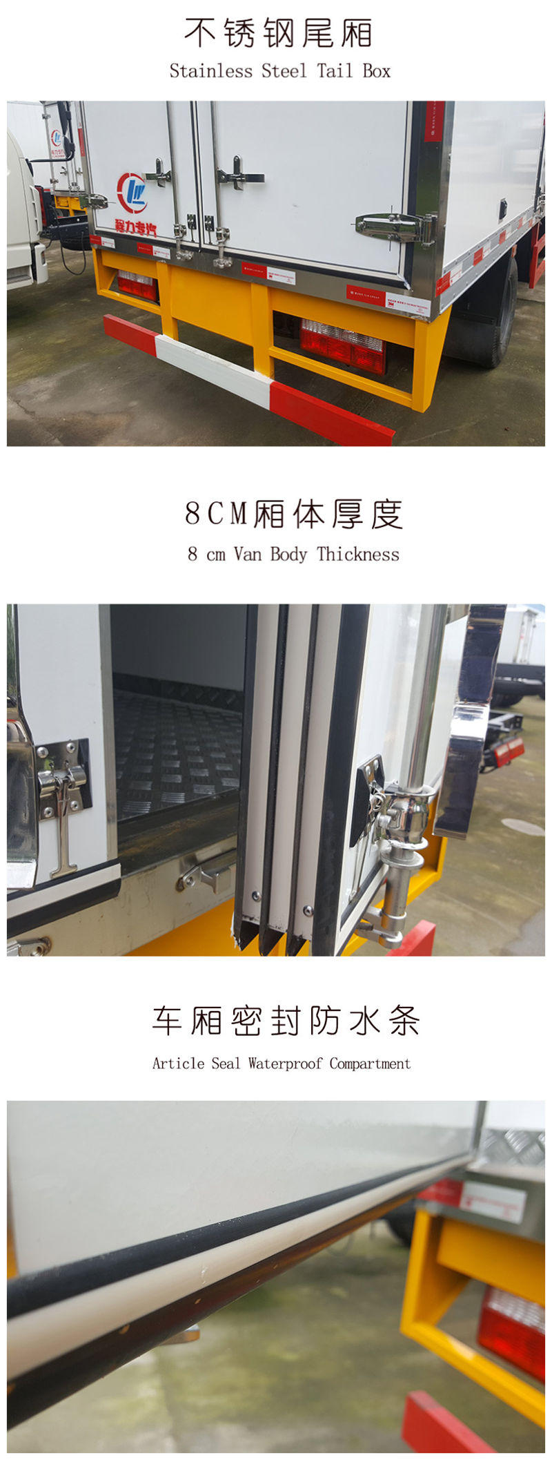 车厢顶部封闭,不可开启.选装同系列新前脸驾驶室.选装新的侧面结构的驾驶室.随从底盘选装导流罩.选装同系列的排半驾驶室.选装改侧面的排半驾驶室.选装不同的镜子安装位置.选装货箱.货箱选装可升降的液压尾板.可选装功率相当的其它型号的制冷机组.侧防护及后下部防护装置的材质为R13钢,连接方式为螺栓连接,后部防护离地高度380mm,断面尺寸为120?0mm.油耗值12.0分别对应发动机CA4DC3-10E5,WP3.7Q102E50.油耗值12.2分别对应发动机CA4DC3-12E5,WP3.7Q130E50.ABS生产厂家:上海万捷汽车控制系统有限公司,ABS型号: VIE ABS-II.