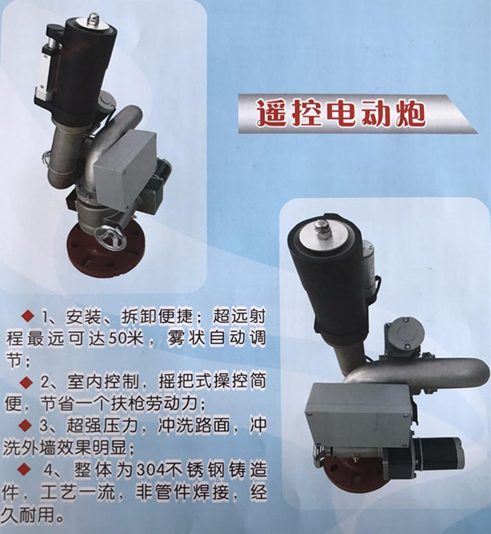 全自动遥控洒水枪是由我公司独家研发的高端洒水枪,在洒水车头加装平台进行安装;由水枪部分和控制器组成,安装快捷,操作简便;驾驶室内可控制洒水枪喷水状态,射程、旋转角度、水柱大小均可调节。