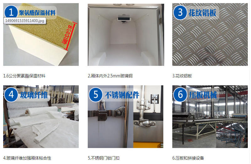 1、厢体:采用大型16米压板压制一次性成型,聚氨酯板块粘接玻璃钢结构,中间填充高密度保温材料(聚氨脂),厚度80-120mm;