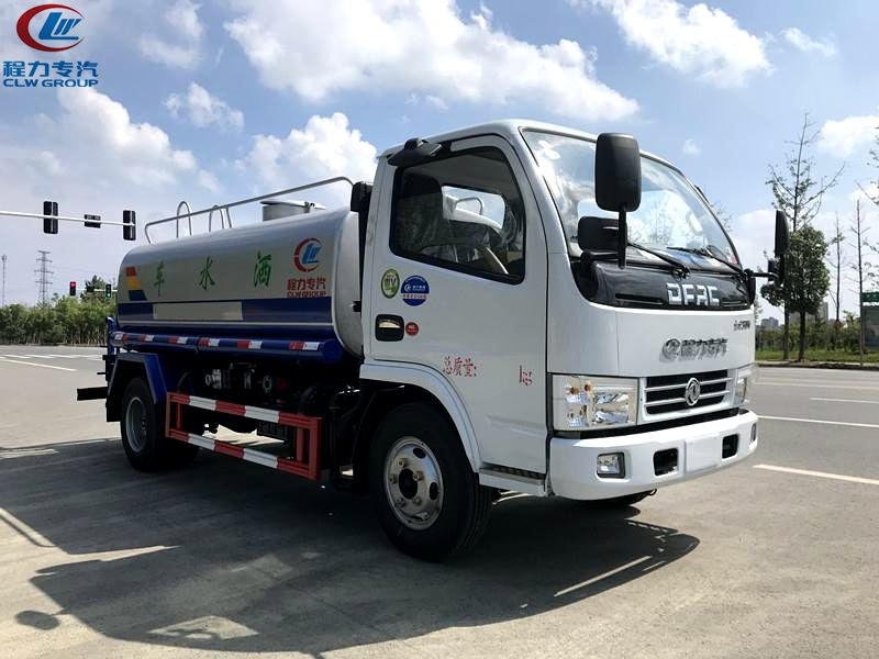东风5方国三不上户洒水车,东风原厂多利卡,福瑞卡底盘,3300轴距,标配前冲,后洒,侧喷,高炮